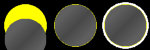 | Figure 1: The three different types of solar eclipses. From left to right: partial, annular, and total. The rim of white light around the total eclipse is the sun's corona. |