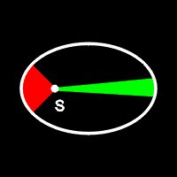 | Figure 2: An illustration of Kepler's second law. The a line from the sun (S) to the planet sweeps out equal areas in equal times so the planet moves faster the closer it is to the sun. |