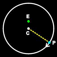 | Figure 1: The eccentric. The center of this construction (C) is not earth (E). |