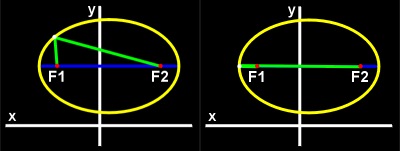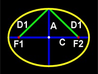 | Figure 14: A is half of the length of the minor axis. C is the distance from the center of the ellipse to F1 or F2. |