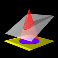 If the plane is tilted, but is not tilted enough to be parallel to the lateral surface and does not contain the vertex, an ellipse is formed on the plane.