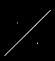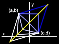 | Figure 9: The yellow line is equidistant from points (a,b) and (c,d) |