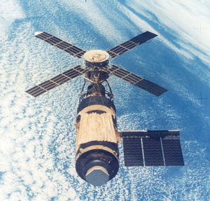 The Skylab 1 mission, launched on May 14, 1973, used launch vehicles and spacecraft already developed under the Apollo program to construct a space station much bigger than the Soviet Union's Salyut. The main body was composed of the 3rd stage of the Saturn V rocket. This provided a much larger living space than that of the Soviet Salyut. The plan was for a crew to be launched aboard a Saturn V, and dock with the Skylab for crew transfer. The return trip to Earth would be via the re-entry command module. This would have worked, except that the solar/ meteoroid shield was ripped off during ascent, tearing with it one solar panel wing. This caused the temperature inside the station to jump to 52 degrees centigrade. The station had to be repaired before long- term occupation would be possible.